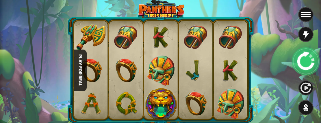 Panther’s Riches is a 5-reel, 30-payline slot game that immerses players in a tropical rainforest teeming with life. The reels are adorned with jungle-themed symbols, including exotic flowers, ancient totems, parrots, monkeys, and the elusive black panther. The game’s design is vibrant, with high-quality graphics that bring the jungle to life.