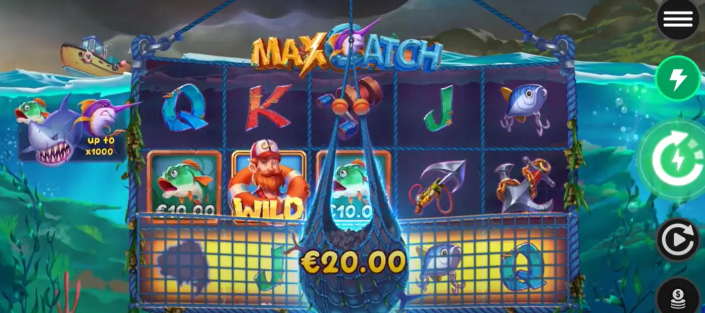 Max Catch is a 5-reel, 20-payline slot that immerses players in a world of fishing excitement. The reels are adorned with symbols such as fishing rods, tackle boxes, shiny lures, and an assortment of colorful fish. The game’s visuals are stunning, with a serene blue ocean backdrop and animations that bring the underwater world to life.